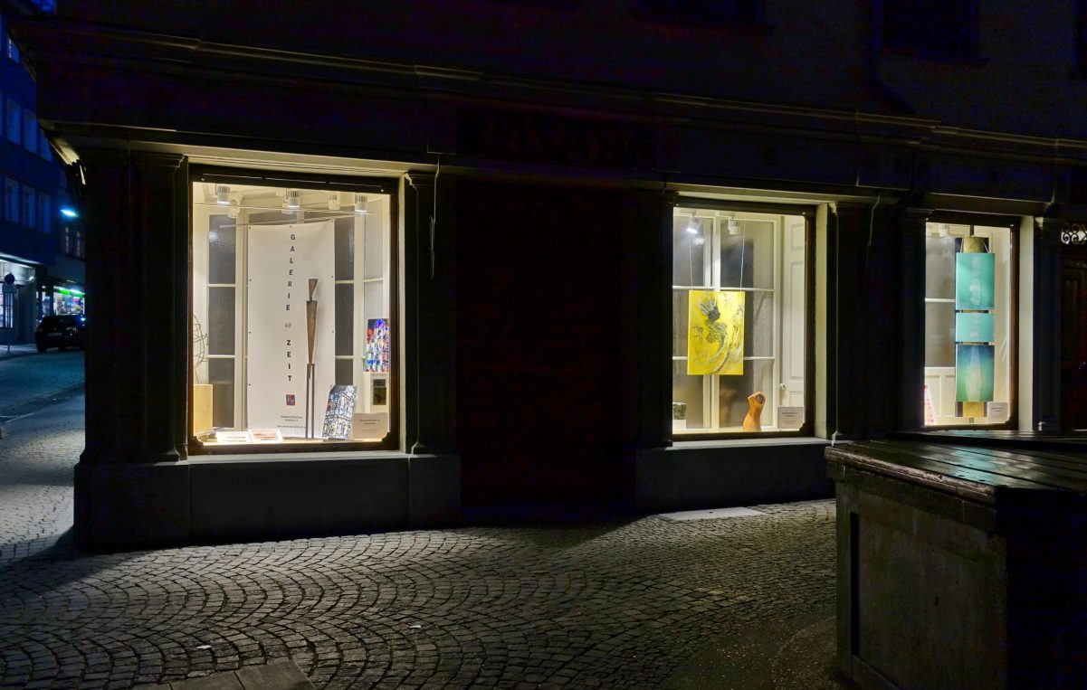 Seit 15.02.2020 ist der Kunstverein nun in den Räumen des ehemaligen KONPLOTT zu Gast mit einer solche Galerie auf Zeit – bereits 4 verschiedene Themenschwerpunkte konnten in den Schaufenstern zur Marktstraße präsentiert werden.