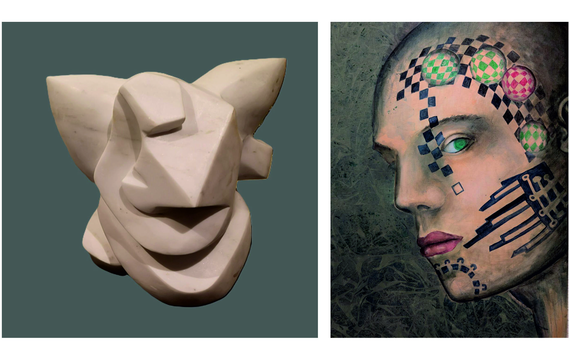 Die Malerin und Steinbildhauerin Maren Dietrich zeigt Köpfe und Portraits. Ob konkret oder abstrakt, ob gemalt, gedruckt, gespachtelt oder gemeißelt und poliert, immer geht es um das Einfangen einer Stimmung, eines Blickes, um das Gegenüber und die Assoziationen des Betrachters.
