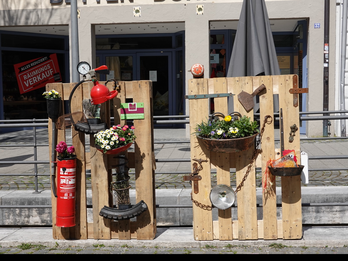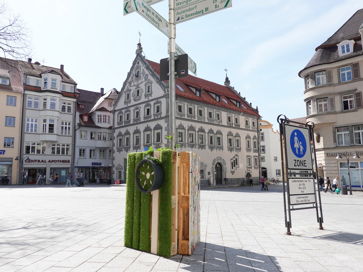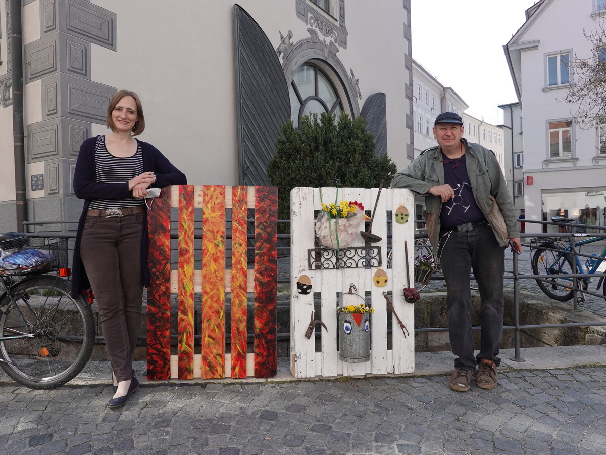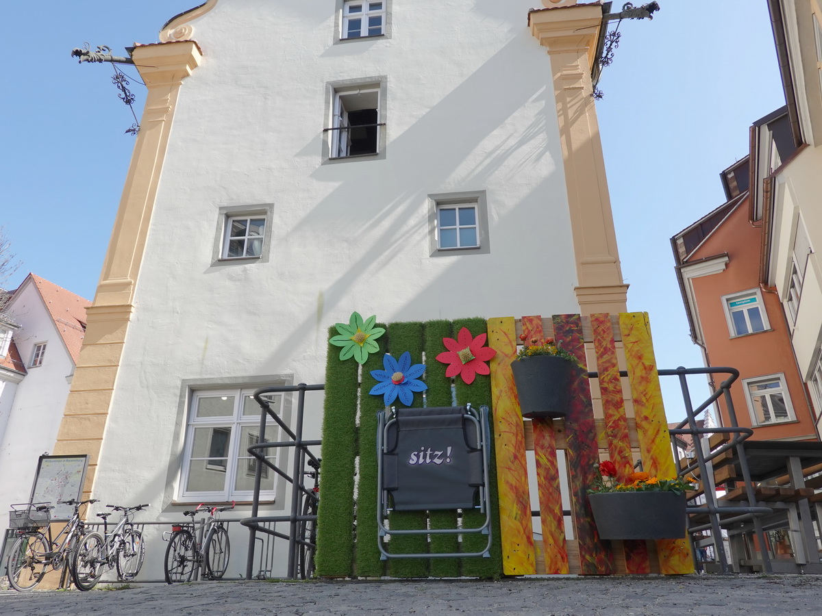 Seit Donnerstag, 1.4.21, lehnen sie sich an Geländer und Wegweiser: Die Ravensburger Europaletten, kurz „RAVletten“. In einer Mischung aus Kunst, Bepflanzung, Aufenthalt und Augenzwinkern verteilen sie sich vorerst zwischen Bach- und Roßbachstraße. Die Idee stammt vom Wifo-Mitglied Ravensburg-Weingartener Kunstverein e.V., gefördert wird sie von der Initiative Ravensburg.