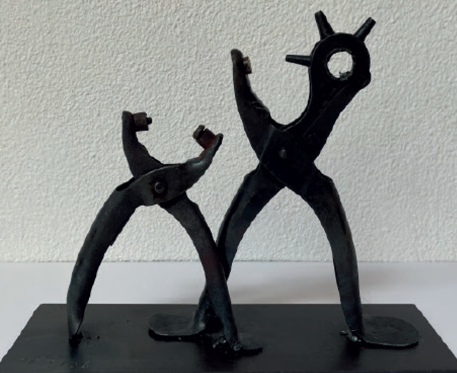 „Stoned and Heavy Metal“– der Titel weist auf die Materialien hin, mit denen Dietmar Hawran bevorzugt arbeitet: Stein und Metall. Gerne nimmt er Recyclingmaterialien zur Hand. So finden in seinen „Zangengeburten“ alte ausgemusterte Zangen vom Schrottplatz und von Flohmärkten ein neues Leben.