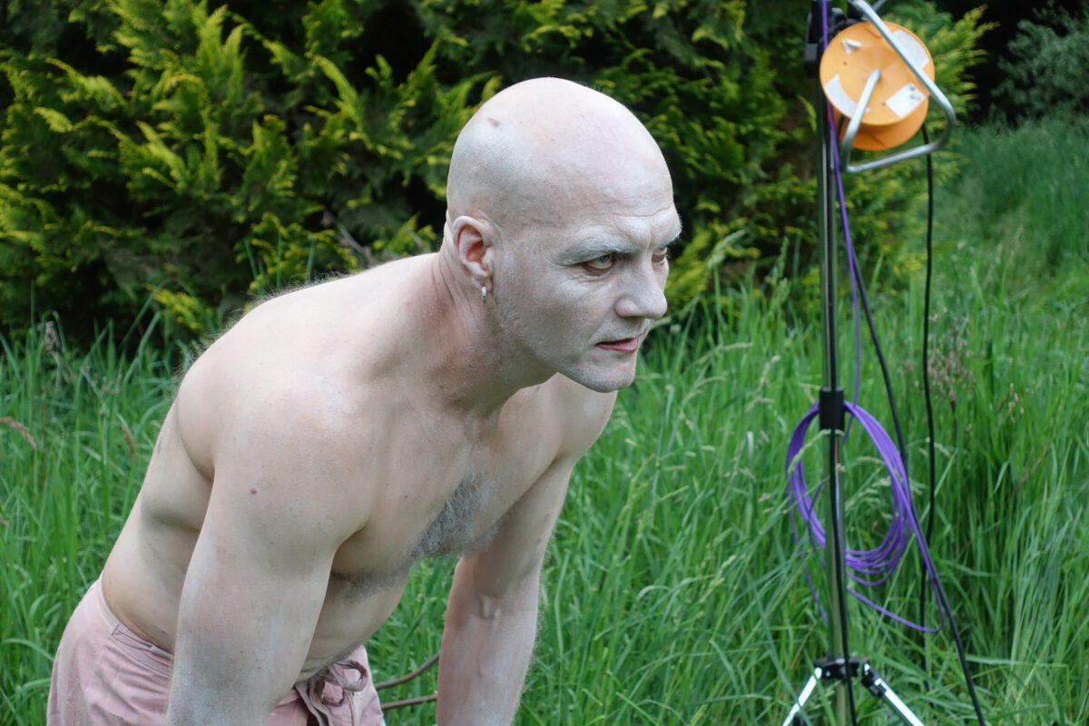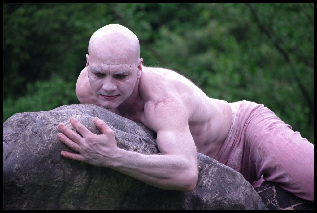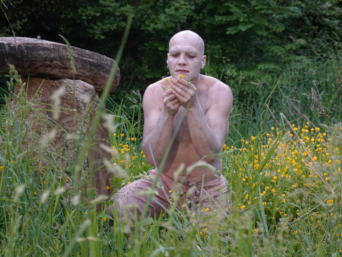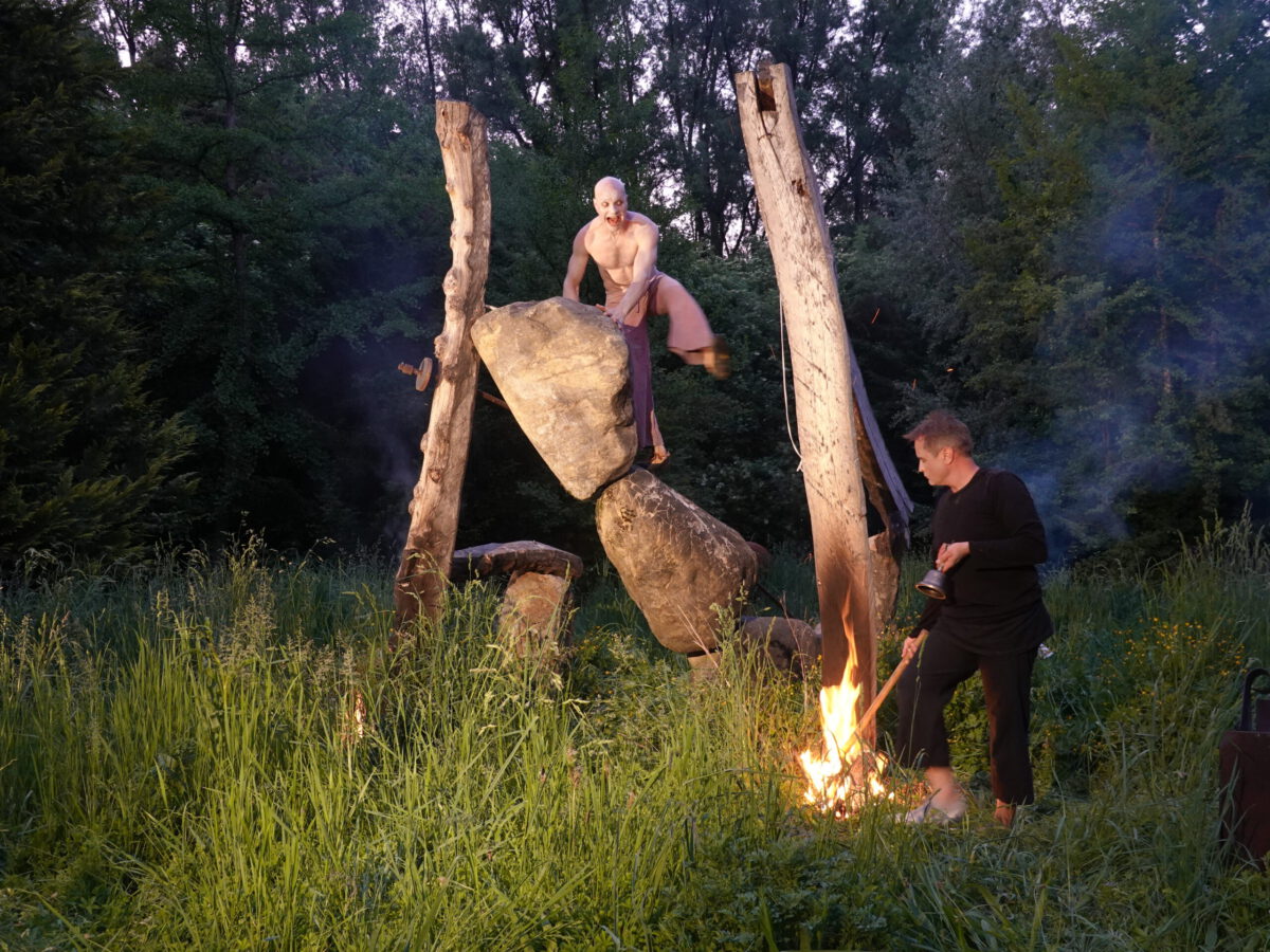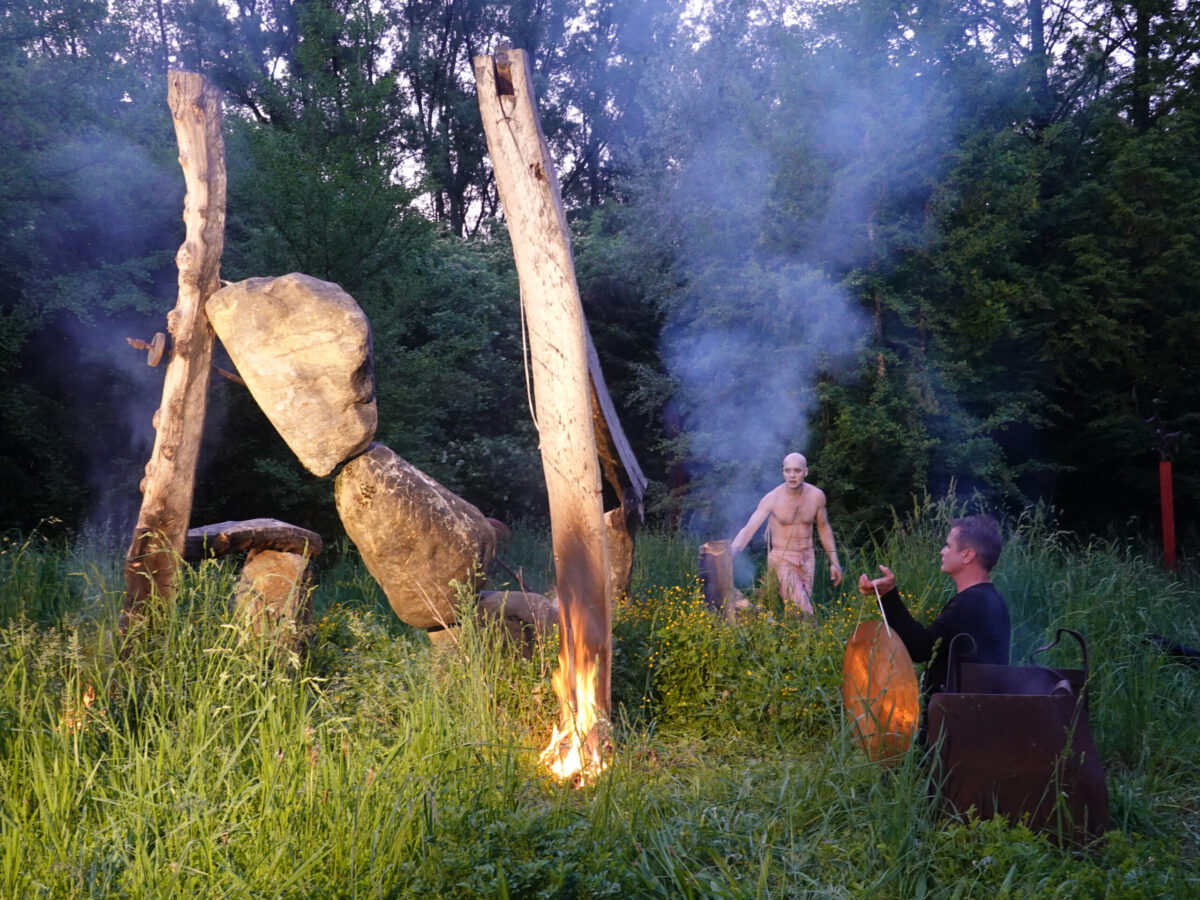 Wie schon zur Einweihung 2012 führte das Performance-Duo KYOSAI die Performance durch. KYOSAI, das sind Falco Jahn (Tanz/ Butoh) und Viz Michael Kremietz (Shakuhachi/Klanginstallationen)