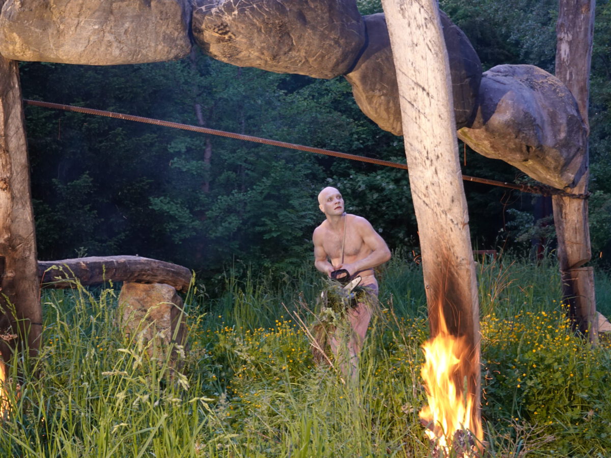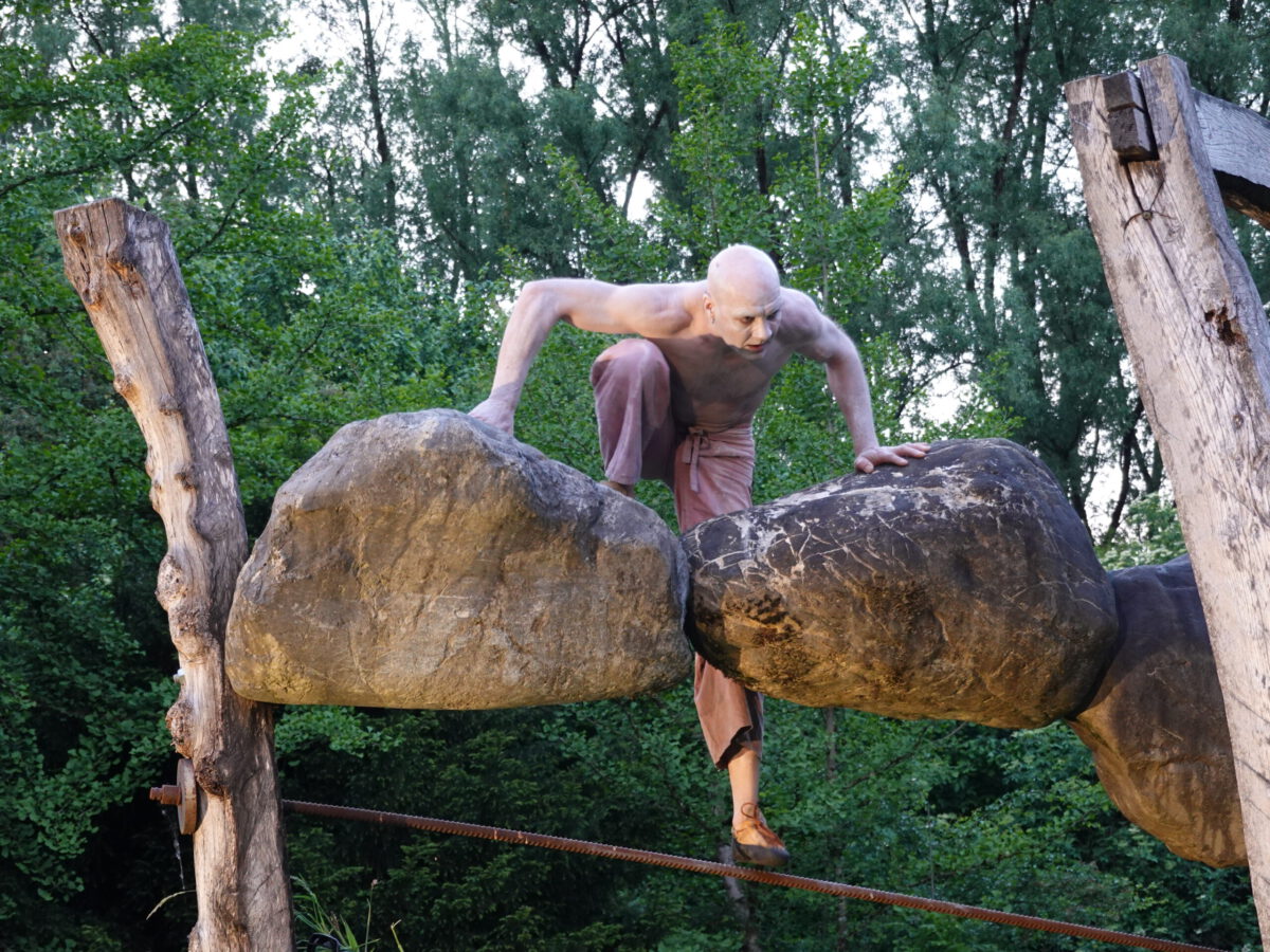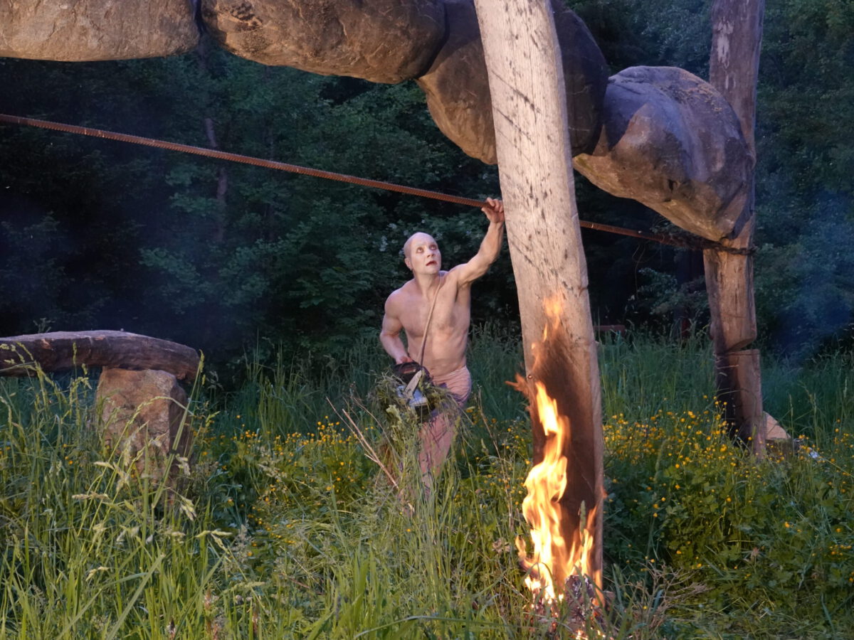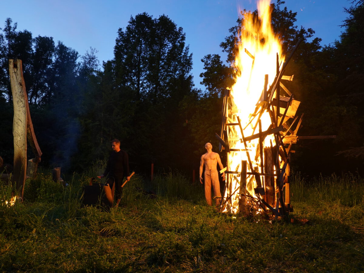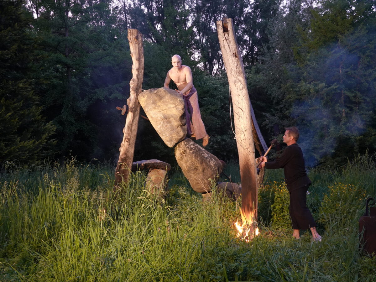 Wie schon zur Einweihung 2012 führte das Performance-Duo KYOSAI die Performance durch. KYOSAI, das sind Falco Jahn (Tanz/ Butoh) und Viz Michael Kremietz (Shakuhachi/Klanginstallationen)