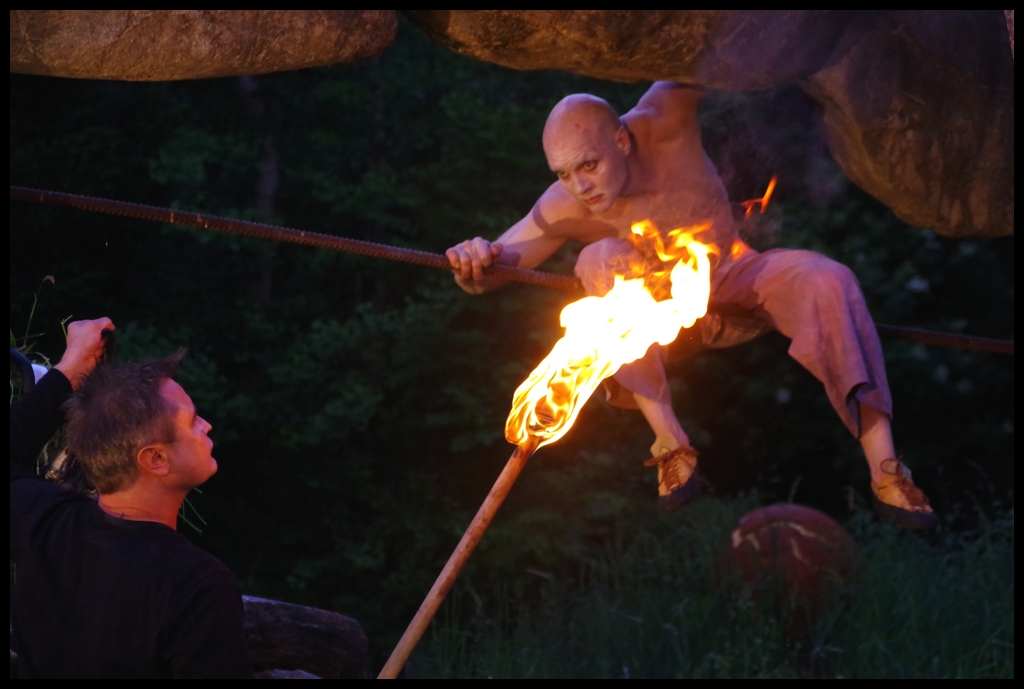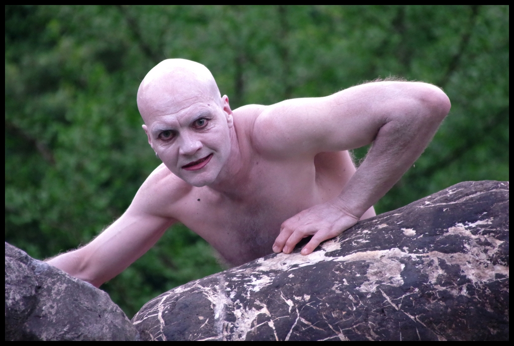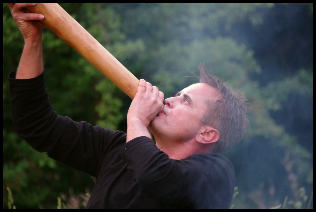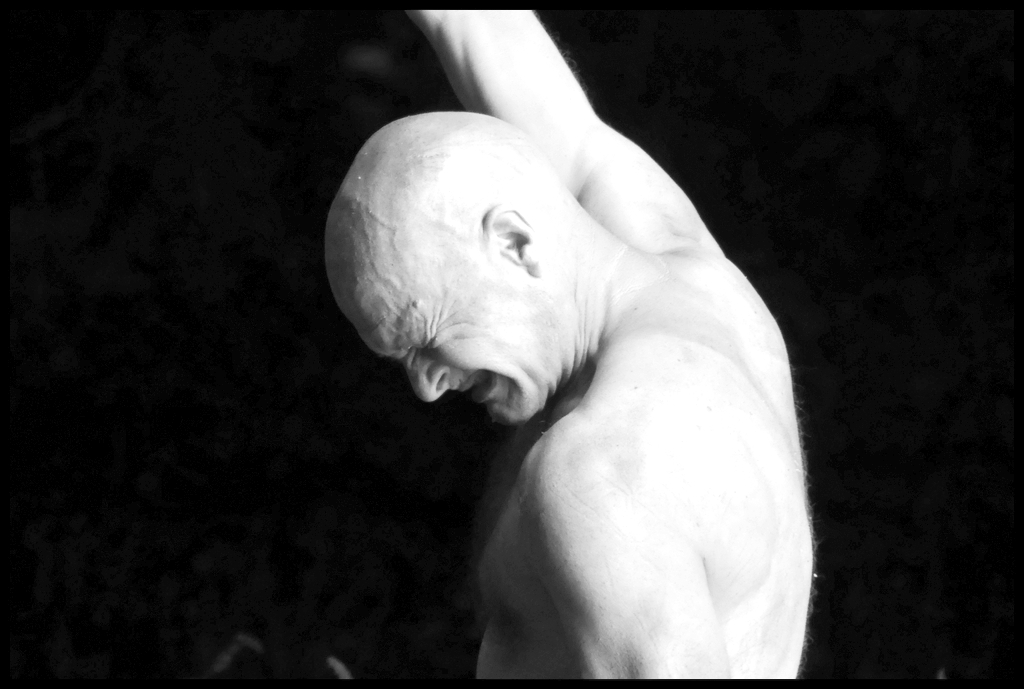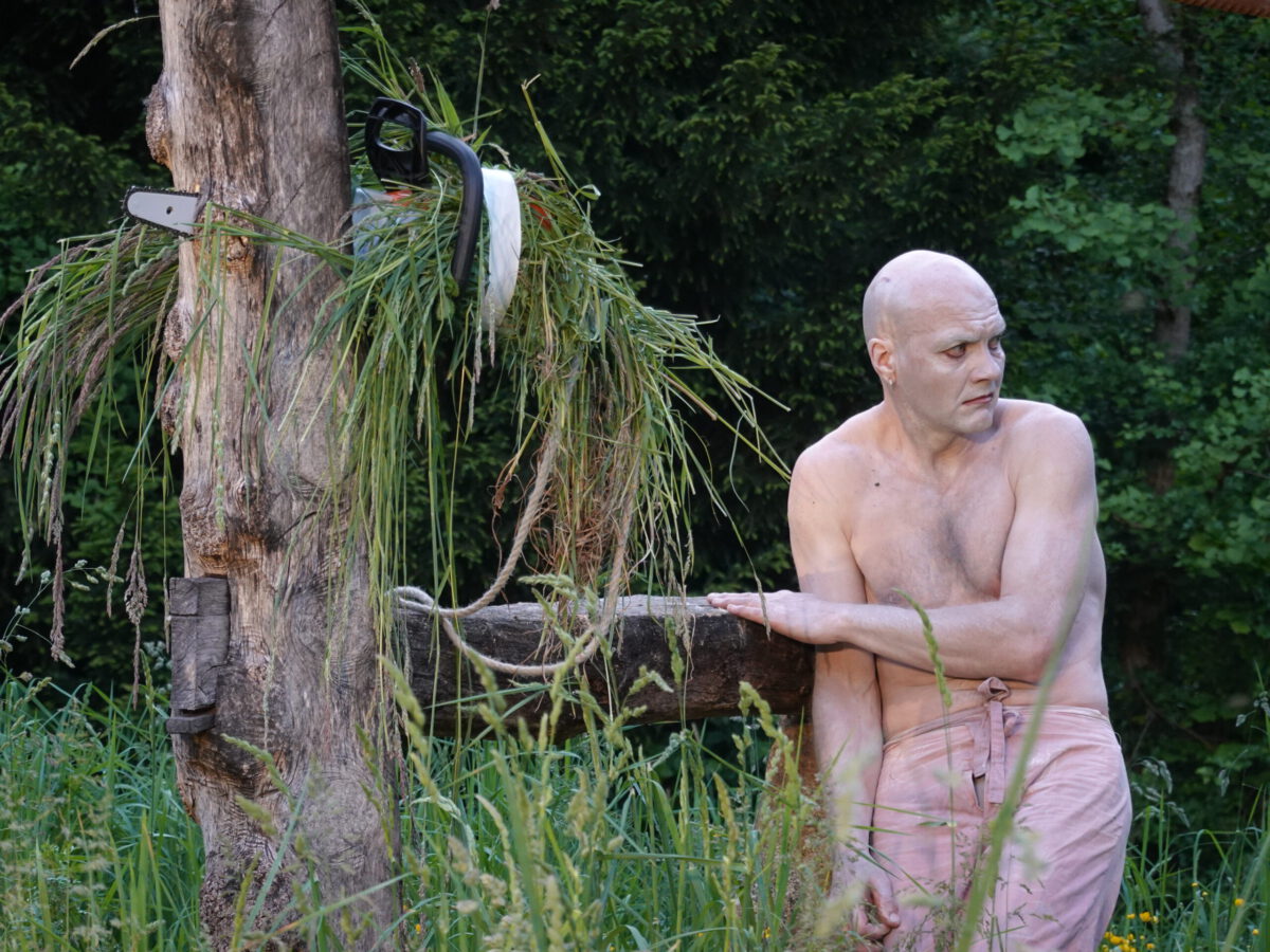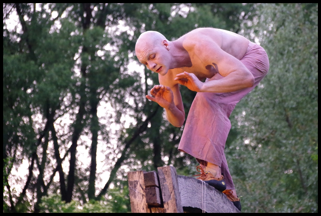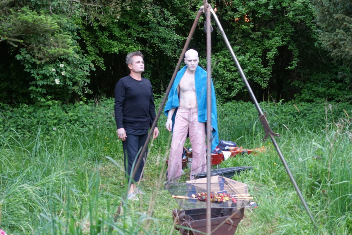 Wie schon zur Einweihung 2012 führte das Performance-Duo KYOSAI die Performance durch. KYOSAI, das sind Falco Jahn (Tanz/ Butoh) und Viz Michael Kremietz (Shakuhachi/Klanginstallationen)