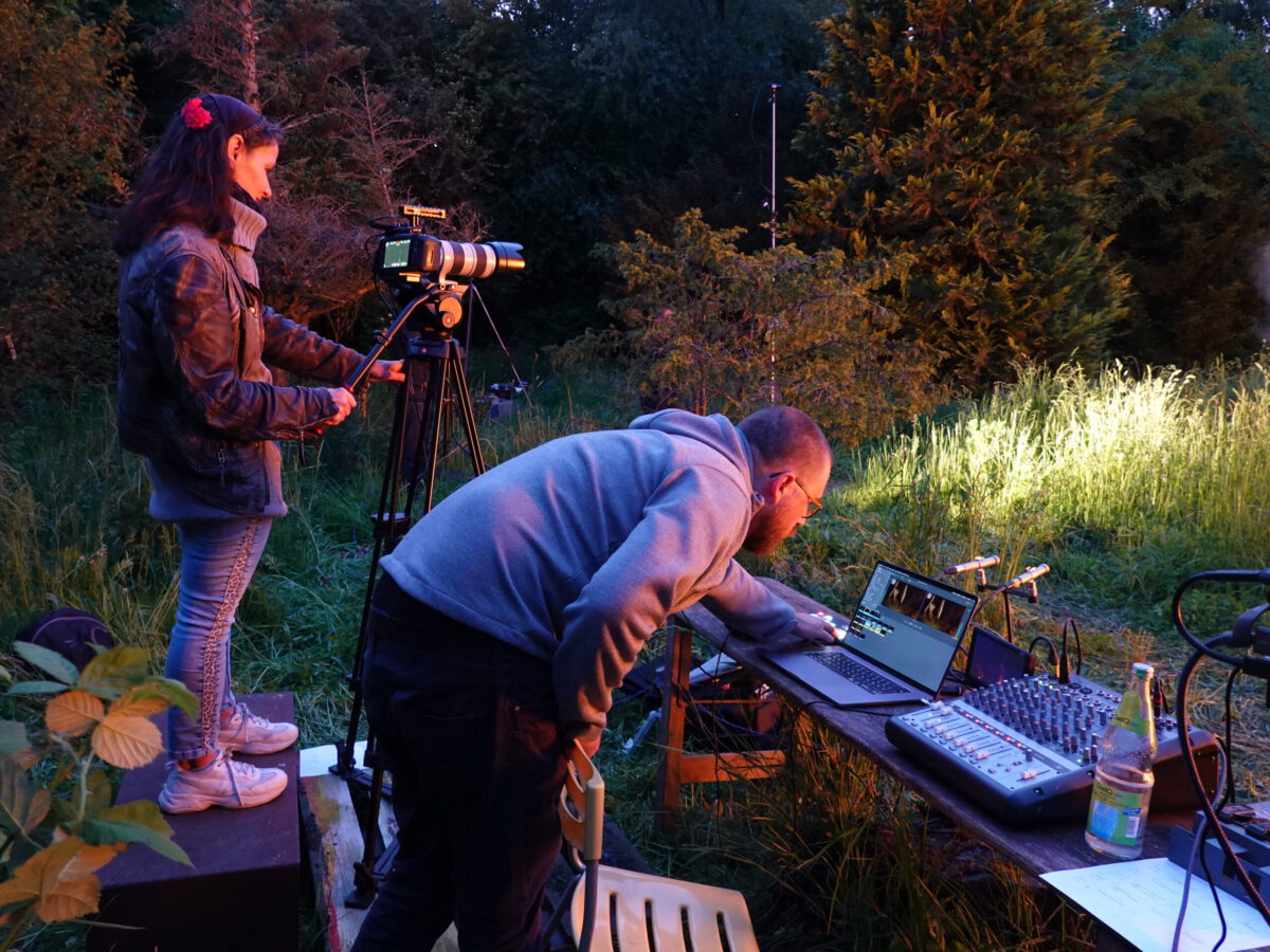 Die Performance wurde von der Firma art & technical direction for space, motion & interaction, begleitet von der Medienkünstlerin Ute Schraag (mobile Kamera) ins Netz gestreamt. Hier die gesamte Dokumentation.